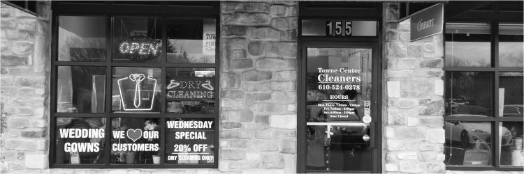 TOWNE CENTER CLEANERS 155 West Lincoln Hwy., Exton, PA 19341 @ Whiteland Towne Center Shopping Center Tel: 610-524-0278 www.TowneCenterCleaners.com |
